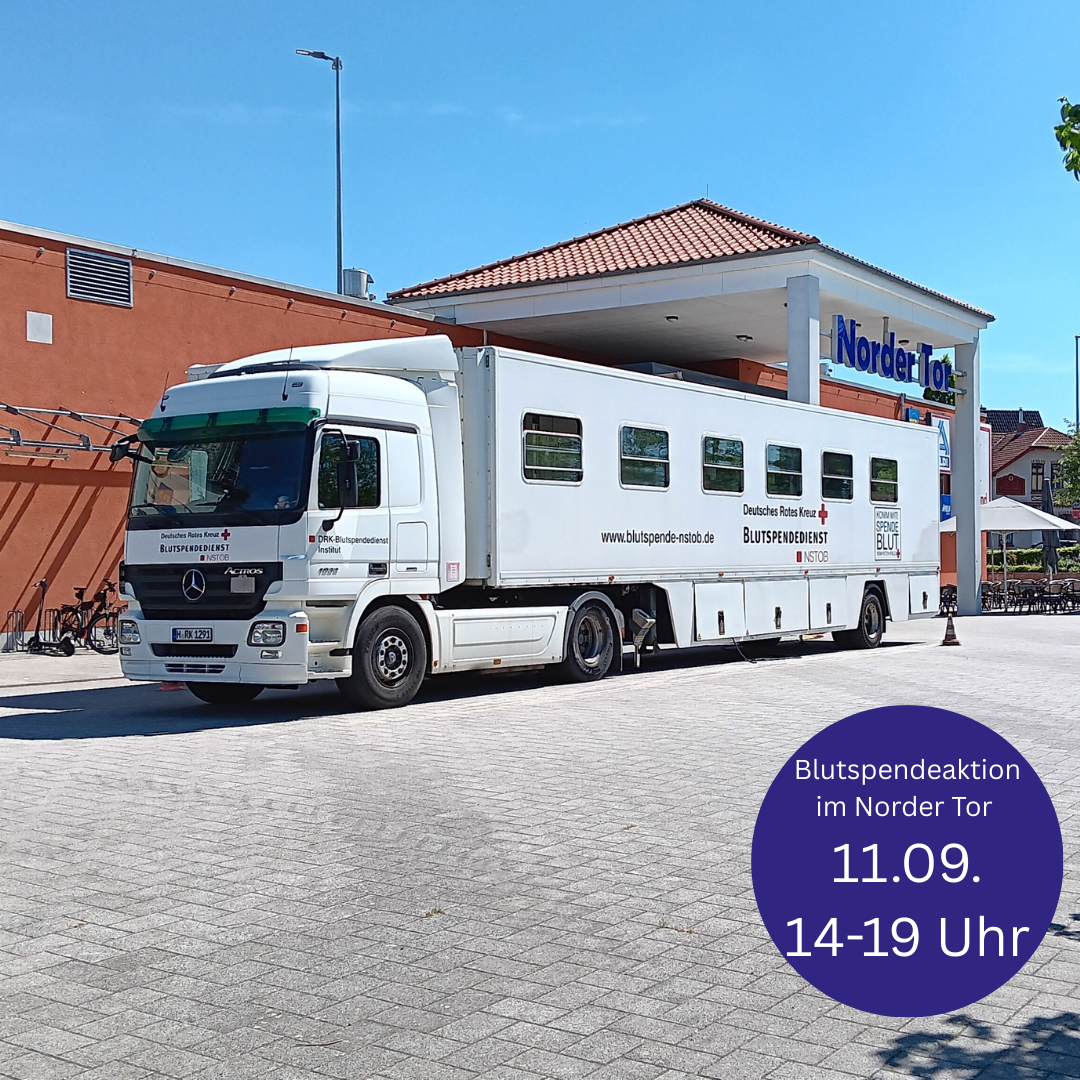 Am 11. September könnt ihr im Norder Tor zwischen 14 und 19 Uhr Blut spenden.